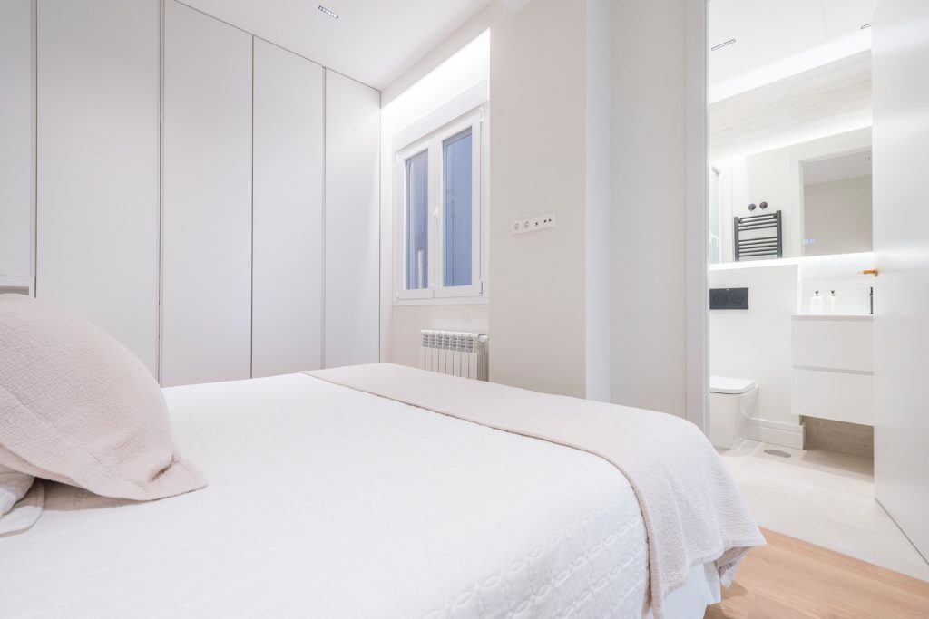 Propriété neuve dans le quartier de Salamanca à Madrid. Située rue Ortega y Gasset au premier étage, avec de hauts plafonds et une grande luminosité. Les trois chambres et trois salles de bain (dont deux en suite) sont complétées par des portes cachées élégantes qui, lorsqu’elles sont fermées, créent un effet moderne et sophistiqué tout au long de la visite.